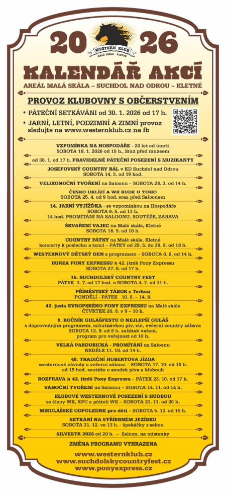 SOBOTA 14. 2. 2026 od 14 hod. - Westernová expozice Pony Expressu
